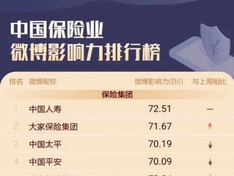 保险集团方面,中国人寿位居榜首;大家保险集团排名第二;中国太平位列第三。